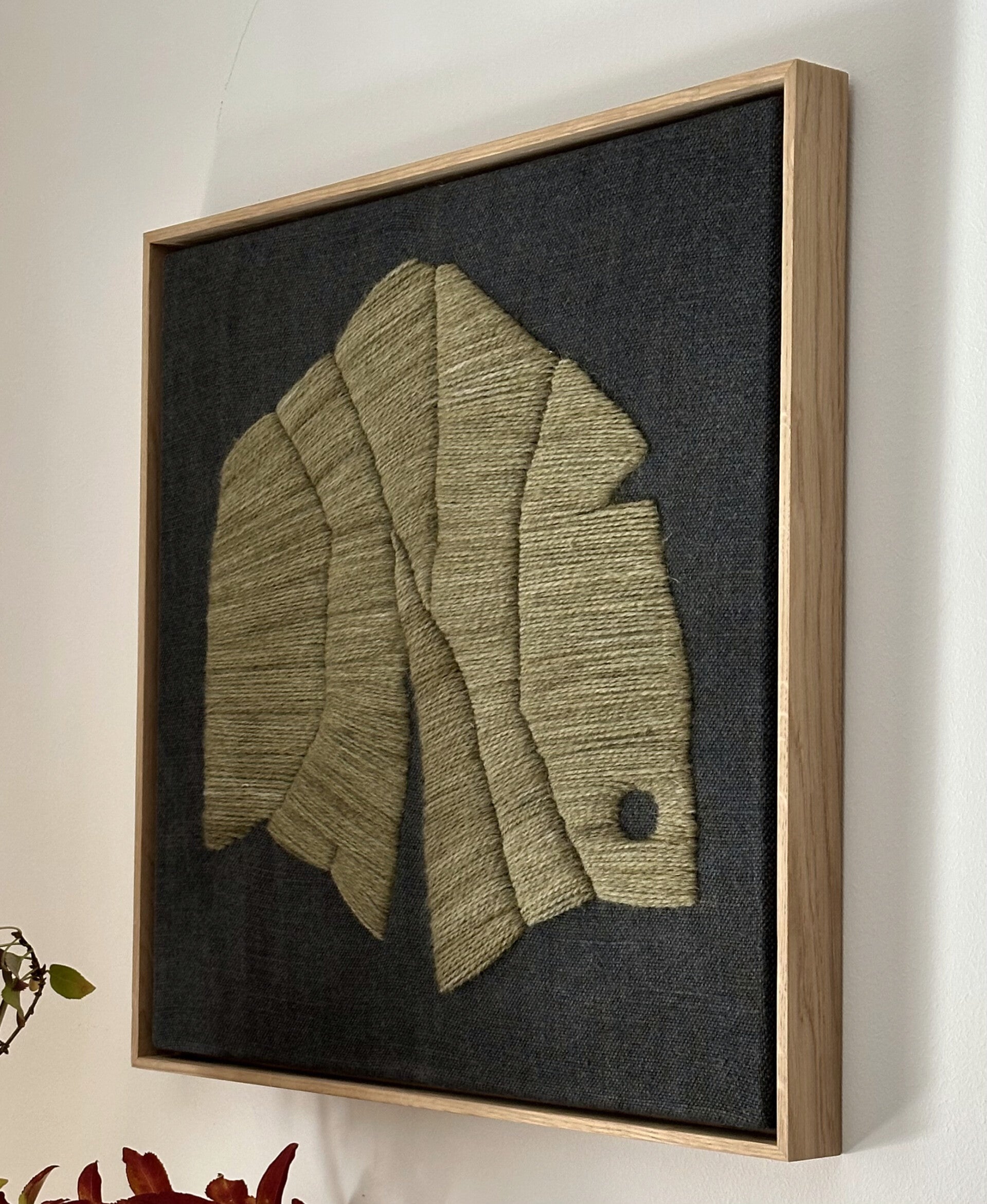 Haft punch needle, naturalna wełna owcza na lnianym podłożu. Oprawiony w drewniana dębowa ramę.